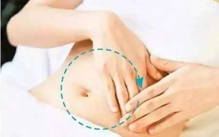 先搓热双手,然后双手重叠,置于腹部,用掌心绕脐按顺时针方向,由小到大转摩36 周,再逆时针方向由大到小绕脐摩36周,有增加胃肠蠕动、理气消滞、增强消化功能和防治胃肠疾病等作用。