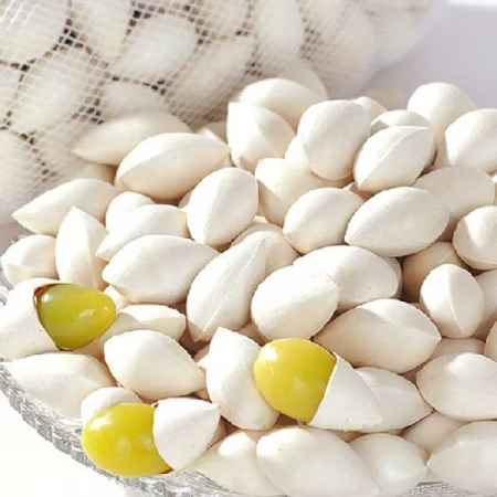银杏果是银杏的种仁。椭圆形,长1.5~2.5cm,宽1~2cm,厚约1cm。表面黄白色或淡黄棕色,平滑坚硬,一端稍尖,另端钝,边缘有2~3条棱线,中种皮(壳)质硬,内种皮膜质。一端淡棕色,另端金**。种仁粉性,中间具小芯,味甘、微苦。主产于江苏、广西、**、河南、山东、湖北等地。