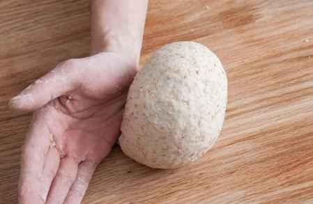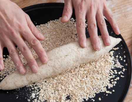 4.面团表面沾点水,沾上麦片