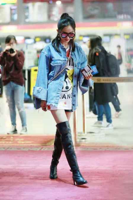 杨幂街拍各种风格玩得可溜了,生完小糯米后的杨幂简直在逆龄生长,Oversize牛仔外套搭配过膝长靴,酷炫狂拽花式秀腿!白色药丸的印花T恤来自Moschino,药罐的包包也超有看点,亲身示范“药不能停”。连配饰都充满了小心机,一个小细节都不放过!
