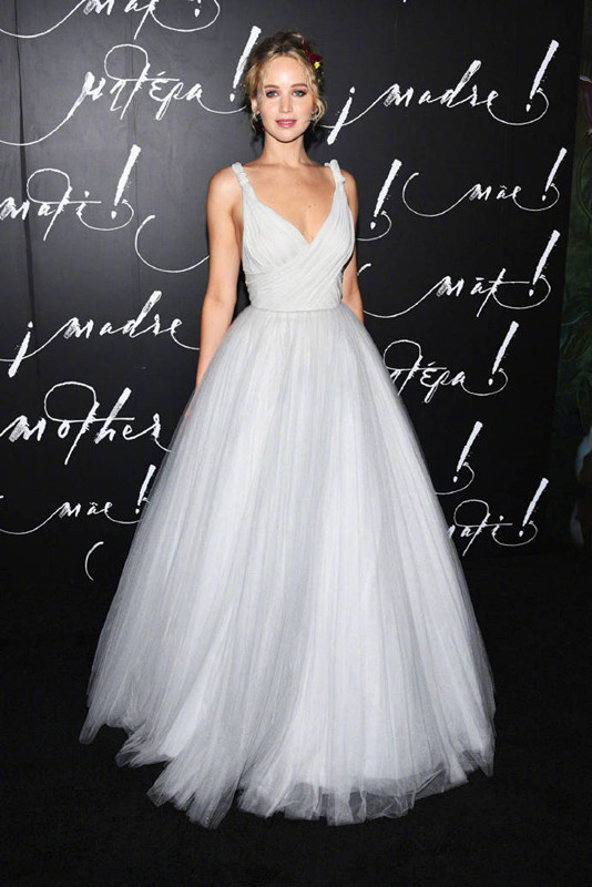 Jennifer Lawrence《**》纽约首映 Dior白色纱裙惊艳似仙女