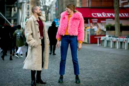 红色调的短款皮草搭配蓝色牛仔裤来穿,红色和蓝色是最年轻的一组撞色,具有运动感的活力,而且打造强烈的视觉冲击感,吸引镜头小能手。