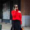 张俪最新街拍身穿红色大衣搭配红白条纹衬衫,尽显**气息,下搭蓝色牛仔裤休闲十足。链条包和一脚蹬色彩呼应,黑色也带来一丝酷劲儿,暖冬就这样出街也很迷人呢。