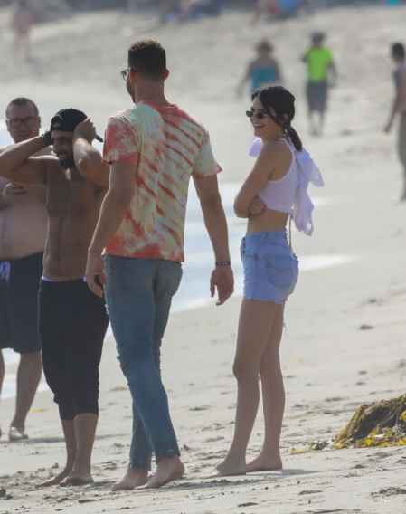 2017.9.3 Kendall Jenner白色露脐上衣搭配牛仔热裤与 With Blake Griffin, Los Angeles沙滩畅谈,穿着随意的她仍旧不失潮范,一副迷你墨镜逗趣十足,网友直呼求同款~