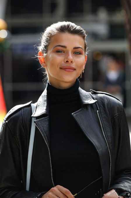 Georgia Fowler皮衣+阔腿裤街拍 超模架势帅气十足