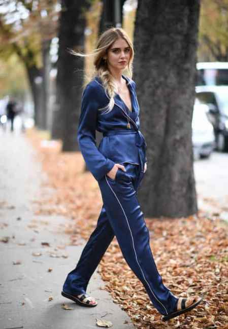 10-07 阅读(3512)Chiara Ferragni绝对是宇宙最会穿的时尚博主了,近日Chiara ferragni一袭深蓝色睡衣套装现身时装周,不得不承认任何风格都能穿出 女神的感觉。快来看看Chiara ferragni最新街拍吧!