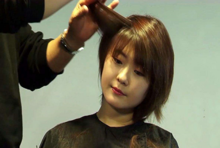 05-30 阅读(2407)修剪刘海两边的鬓角首先应该将要修剪的鬓角留出来,剩余部分应该扎起来。抓起一侧的鬓角拉到脸的对侧至下巴部位,拿起剪刀进行修剪,注意将剪刀竖起来剪,不要横着剪,横着剪出来的鬓角不够自然没有层次感。另一侧也是同样的方法。