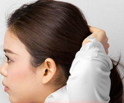 第二步:接着下来用将全部头发合拢成马尾,注意:位置不要太高了,中等就行。