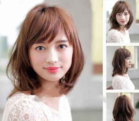 发型点评:四六分长刘海烫出轻柔的内扣弧度,浅色系发色轻柔唯美,层次感十足的齐肩设计,使得脸型更加的立体和娇小,搭配一抹淡妆,甜美小清新范。