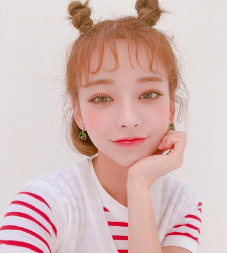 这两年特别流行扎这种**到不行的哪吒头,将头顶的头发扎成小啾啾哪吒头,一半是短发+空气刘海搭配,想不招人喜欢都难吧。