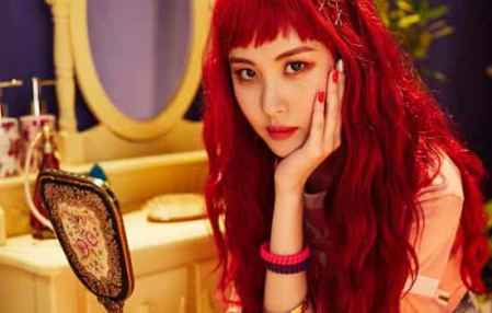 将眉上刘海微微打理成狗啃的式样,更有一种随性的感觉,经过烫卷的长发充满性感奔放的女人味,若是染成红色调的暖发色,就更能衬托出白皙的肤色。