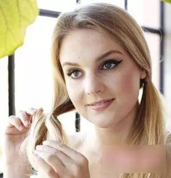 第一步:首先女生将头顶发丝边分梳理开来,后面的头发一分为二,分开的头发分别聚集在耳后后下方位置,然后用细皮筋扎成低马尾辫。