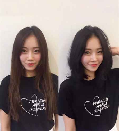 上图是个长脸妹子,左边的发型让她的脸显得很长,右边的外螺旋短发让她的脸看起来既**又清新,脸看起来短了不少呢。