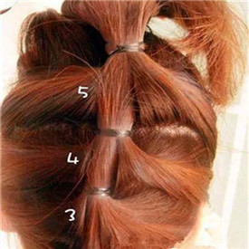 step 3:依次向上将下半部分的发丝扎成竹节状的马尾发型呈现出图片上的效果。