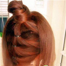 Step3:麻花辫以顺时针方向环绕扎发处的四周盘起来。