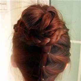 step 6:按照同样的方法将上半部分的发丝也编织成麻花辫缠绕在花苞发髻上,让花苞发髻更加饱满。