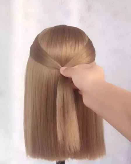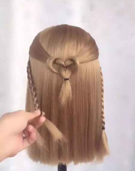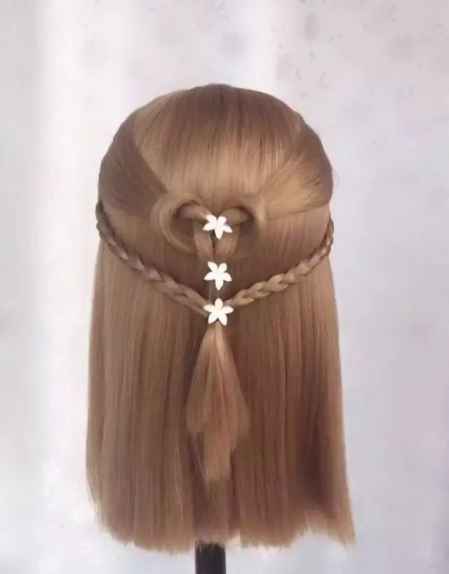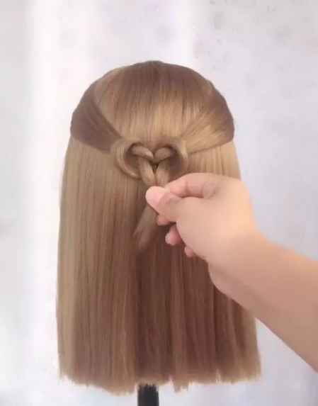 然后把小辫子分成两份,分别从上面的头发上穿过去,然后扎到一起。如下图