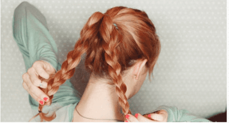 第三步:把龄一部分的头发也编织成成三股麻花辫,至发尾也用橡皮筋扎好。