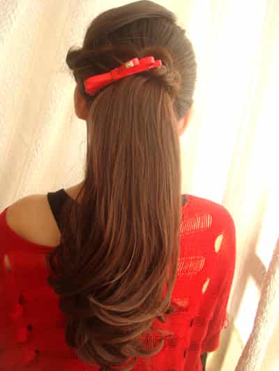 04-22 阅读(25506)马尾是最好打造也是造型最多的发型,不需要可以的修饰或是装饰,都能打造出完美的视觉感,如果加上少许装饰一定会让你成为焦点的,潮人推荐韩式简单马尾辫发型扎法,三分钟DIY俏皮公主发型。