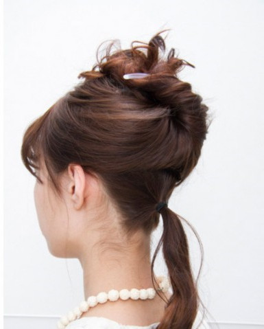 第三步:再将头发扭转成图中的发辫,并用黑色小发夹固定好。