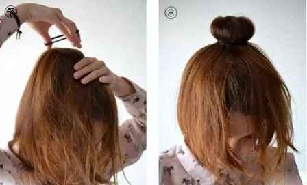 Step 11 & Step 12:将拧紧的两小束发束分别绕着发包缠绕