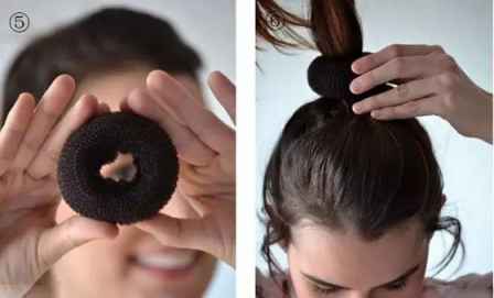 Step 7:将马尾放下,围着海绵散开,再用发绳绑在海绵发束处