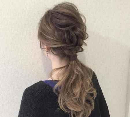蓬松马尾辫,用编发增加立体感之后,再扎成低马尾,气质成熟优雅。
