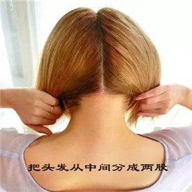 梳通之后的头发,刘海可以自己调整,从前向后,将头发从中间分成两股,笔直的分发有助于发型整齐效果。