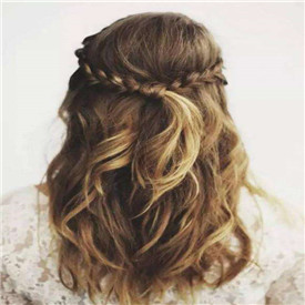 分两边的头发,将一边固定,另一边的头发开始挑起上层头发,编一股麻花辫,后侧的编发每编一股头发,都将余下的头发从两边挑起来一股,编进去