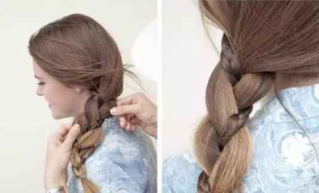 Step4:继续按三股麻花辫的编法将三束头发进行编发。