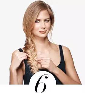STEP6:编到发尾用橡皮筋固定,然后用手指将鱼骨辫拉的更加蓬松自然。