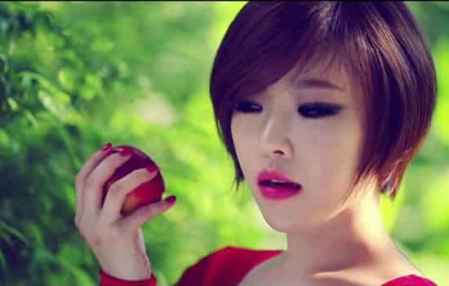 GAIN的每一款短发造型都堪称经典,而碎碎的短发搭配偏分,可谓将性感发挥到了极致,与红色的装束可以说十分相配了。