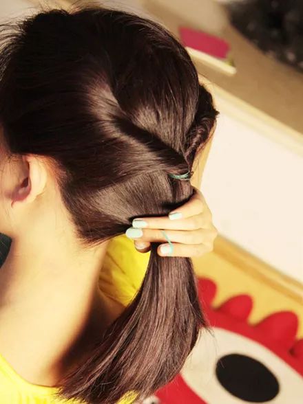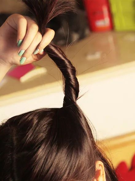 这是拧成的样子,用手固定住,接着拧另一侧的头发。