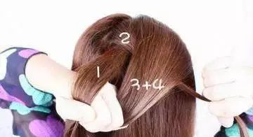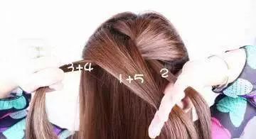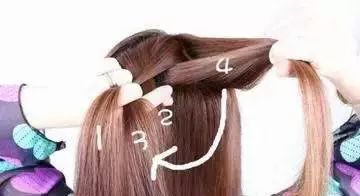 step5:加在上次三股其中的一股合成一股,将发束4加在发束3。