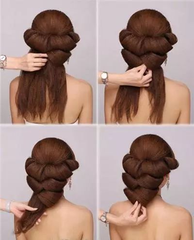 step12 上卷内扣,发尾固定在右侧上一层次的内侧。
