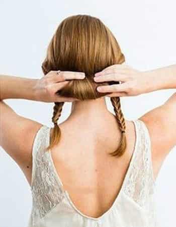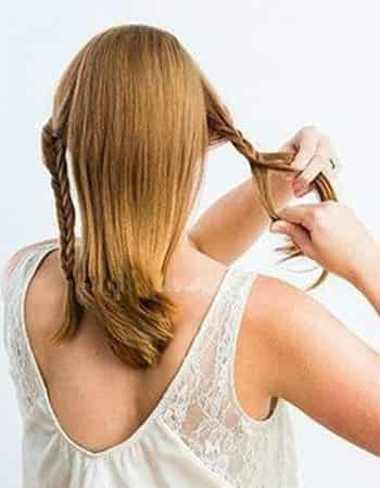 把两边的小部分分别扎麻花辫,然后用皮筋固定发尾