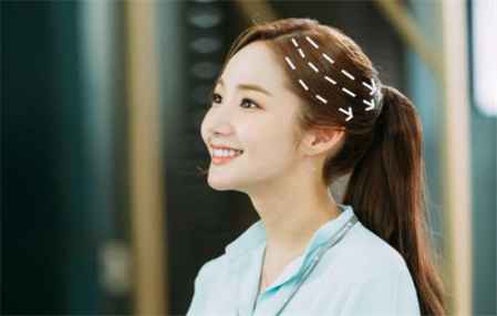 三七分的低马尾:如果大家的头发真的是属于发际线比较高的话,而且自己的脸型也是比较大的话,那么大家可以把头发进行分一下的,可以把自己的整个头发分为一个三份,一个七份的,这样的话就能够让自己左边的头发变得多起来,从而能够遮盖住自己一部分的额头的,而且能够着盖住一部分的脸颊了,就可以给自己扎一个非常简单的低马尾了。