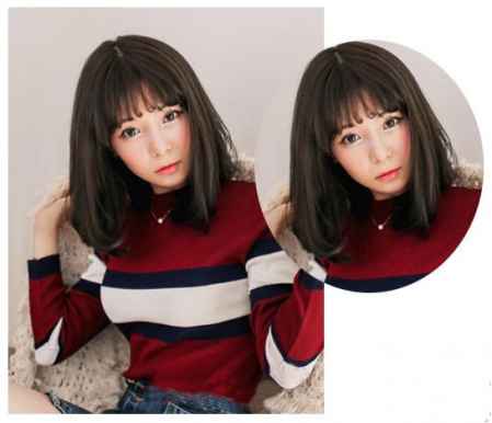 乌黑亮丽的自然发色可是最显女生的清纯气质感了,再搭配清新的空气感刘海发型设计与齐肩形式的内扣**头更显小女生的纯美**感。