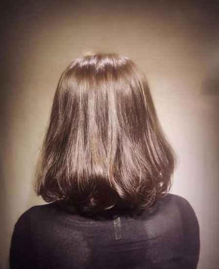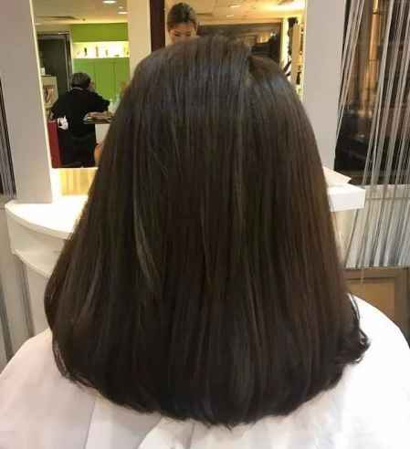 内扣的烫发设计,搭配上偏分的刘海,勾勒出精致的脸型,显得很有甜美气质,十分的显嫩。与轻盈的刘海搭配,凸显出小巧的脸蛋,甜美灵动,黑色的头发也显得简单清新。