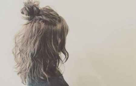 挺洋气的一款短卷发造型,稍稍烫个发就能时髦起来,在头顶扎个半**头,十分俏皮减龄呢,加内扣空气刘海搭配,甜美~