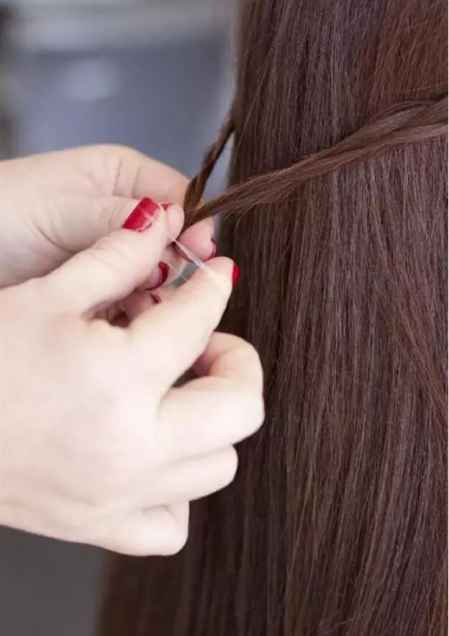 step 5:再将两条发尾用细橡皮筋绑起来。