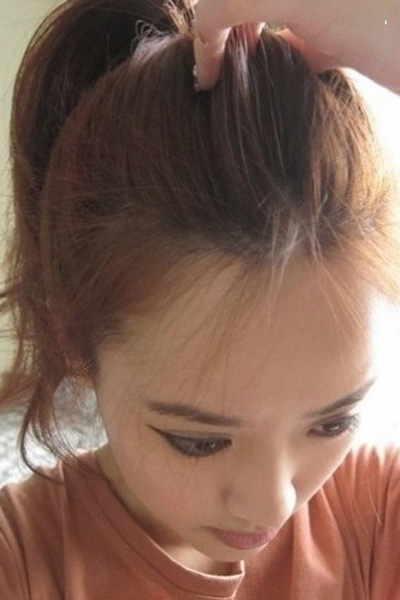 第三步:用手将头顶上的头发稍稍拉松一下,营造出弧度感。