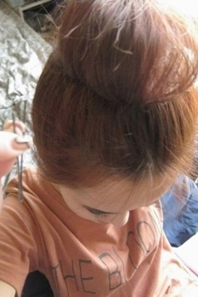 第七步:缠绕至发尾时就形成了饱满的**头,如图,发尾用黑色小发夹固定好,这样就可以完成啦。