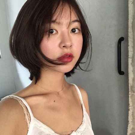 韩国知名麻豆的短发,内扣的波波头可以说是现在很多女生的造型范本,甜美系的发色也是潮妹必学,一点薄薄的空气刘海巧妙增加**感。