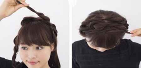 步骤四:再将头顶处的辫子也固定在头顶处,按照图片中的那样,交叉固定这样看起来才极具美观。