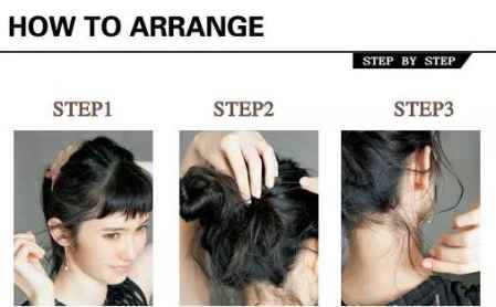 step 1:将头发分成三小束稍微编发然后用头发缠绕发束用发夹固定。