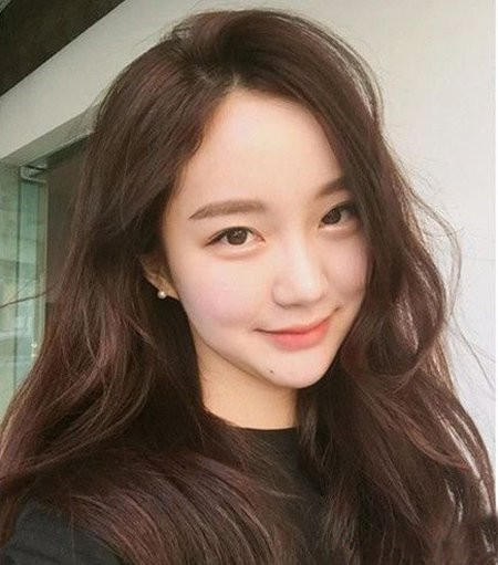 圆脸女生适合的长卷发发型,韩式波浪卷发搭空气刘海修饰额头又甜美,适合脸圆额头短一点的妹子。