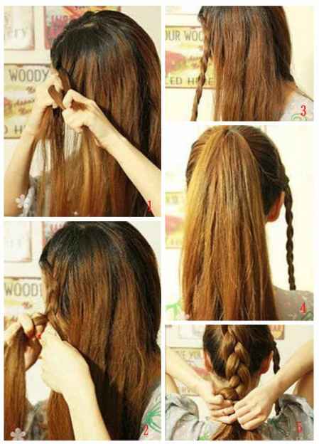 步骤5:再将扎好的马尾编成简单的的三股辫。
