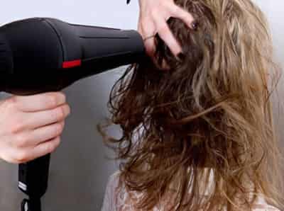 STEP 1:我们现在头发上喷点发胶或者摩斯,再用电风机吹,用来打造这款造型的丰盈度。