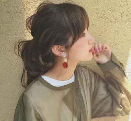 夏天长发最简单的扎法就是马尾,卷马尾+刘海减龄有百搭,是刘海控们的首选发型。